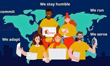 To define who we are - how we talk, behave or react to any given situation - in essence, we are Simple, Happy and Together. These key attributes are visible at every step of the Shopfree journey.
